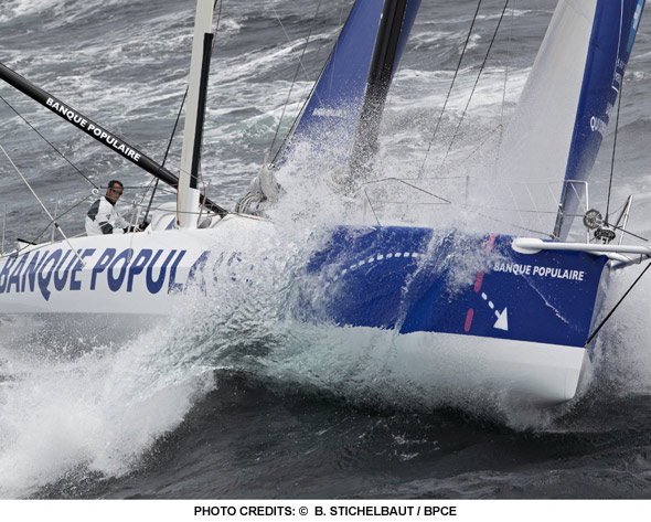 Scorching across the finish line (safety gate offshore of Spain) at 02 h 08 min 10 sec, this Thursday 15 December UTC, Armel Le Cléac'h on Banque Populaire takes second place in the Transat B to B 2011. Armel Le Cléac'h's race time is 09 days 13 hours 08 minutes 10 seconds. Along the theoretical course of 2,620 miles, Banque Populaire racked up an average speed of 11.434 knots.