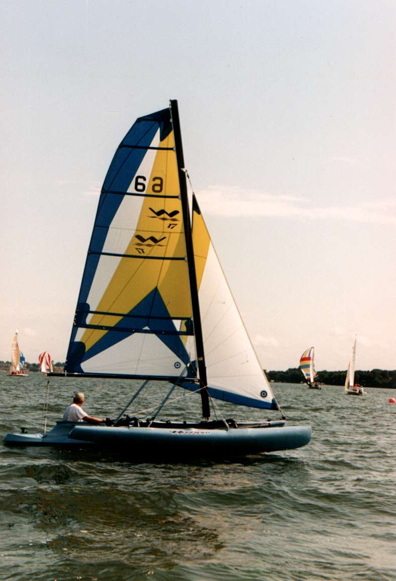 Guy with some spinnakers from the 85 participating boats. Six WR-17's played.