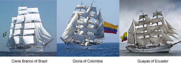 The tall ships include the U.S. Coast Guard Cutter EAGLE; KRI DEWARUCI of Indonesia; JUAN SEBASTIAN DE ELCANO of Spain, GLORIA of Colombia, GUAYAS of Ecuador, CISNE BRANCO of Brazil, CUAUHTEMOC of Mexico, and ETOILE and BELLE POULE, both of France.