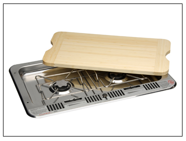 To add to its beauty, the CookMate 4200 is flush-mounted to create an uninterrupted workspace. Its custommade bamboo cutting board fits neatly over the stove. Even with repeated washing, the hardwood board won't warp. This compact, attractive stainless steel stove measures