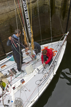Hugues Chollet (Soutenez le Bel Espoir) "I never thought I'd be able to do what I did. When we left Gijon, we were not making headway, we couldn't make decent progress. Like many others, I stopped at Moras. At this time, I was at the bottom of a hole, really depressed. With some other competitors we found ourselves on one of the accompanying support boats where they gave us a good meal. The next day, morale had returned, it was almost beautiful. We knew there would be wind, but I told myself, this is a challenge, you have to go. We took a good bashing, but we made it. Looking back, I am proud to have managed it."