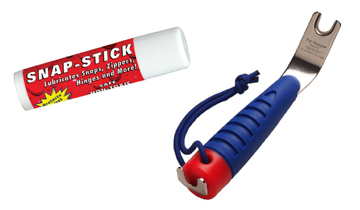 Snaps and zippers are one of the most overlooked mechanical items on a boat. Boat owners tend to notice them the most when they stop functioning properly by becoming stiff or hard to snap. To help prevent this, every owner should have Shurhold's Snap Stick and the EZ Snap Tool on hand.