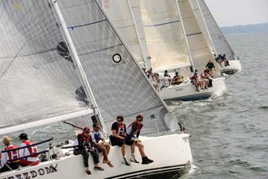 The regatta introduces college sailors, most of whom sail dinghies, to the dynamics of big boat racing. This regatta also gives college sailors who already have big boat experience a chance to take charge of some very fast and evenly matched offshore boats. The fleet racing boats were divided into five divisions: J/105s (10 boats), J/109s (eight boats), J/44s (five boats), a PHRF class (10 boats) and an IRC class (10 boats). The IRC class, stocked with additional leading edge boats, included four Swan 42s, a King 40, a Farr 400 and an assortment of J/Boats ranging from a J/133 to a J/111.