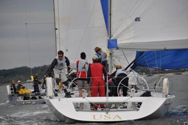 LARCHMONT, N.Y. (October 12, 2012) -- A record 425 college sailors from 38 schools racing 45 borrowed boats came together over Columbus Day weekend (October 6-7) for the 2012 Intercollegiate Offshore Regatta (IOR) hosted by the Storm Trysail Foundation and the Larchmont Yacht Club. With so many college sailors participating, the event has become the world’s largest college sailing regatta. Schools traveled from Canada, the Midwest, New England and the mid Atlantic states, with the University of Wisconsin Madison travelling the farthest.