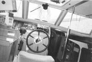 Pilothouse is actually good sized and comfortable with built in aft steps to