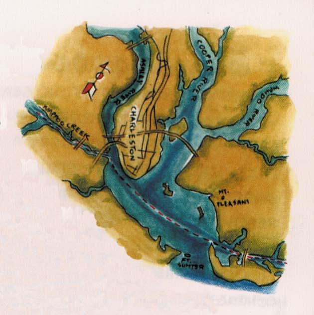 The story is told in words and pictures -- hand printed text and color-washed pen-and-ink sketches and chartlets.