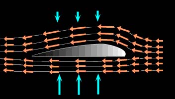 | The Rave's foils work the same as an airplane's wings. The shape of the foil causes water to flow faster over the top of the foil than under the bottom. This causes greater pressure pushing up against the bottom than there is pushing down against the top. The resulting force is upwards, lifting the boat out of the water. The Rave is specially designed to function in a variety of conditions. Unlike some other hydrofoils, the Rave does not require a perfectly smooth lake to fly. | ![]() |