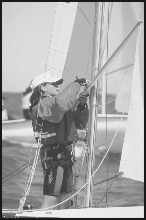 | T. C. Youth Sailing activities prepares young sailors for national events. This young sailor is rigging her boat for a Junior Olympics event. |