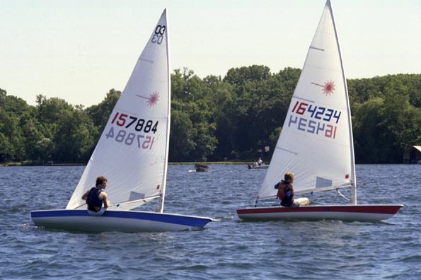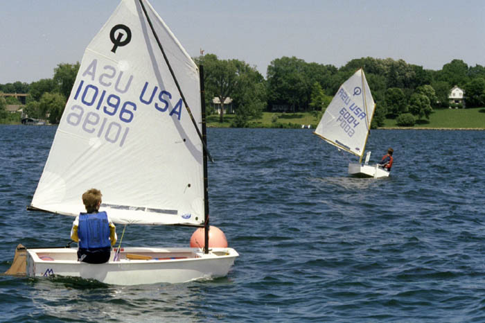 David Jcrominski (Oak Creek, WI), silver medal winner of the 420 class, said a highlight of the event was “letting my crew get experience since it was his first regatta,” although he was also happy that “We got a first after taking 12th for two years.” brian Pannier (Lake Forest, IL) won the Optimist Green Fleet, for the youngest sailors. Catherine Carstens (Lake Forest, IL) finished second, and Robbie Allen (Deephaven, MN) took the bronze medal. Local sailor Jessica Haverstock of the Minnetonka Yacht Club wond the Optimist fleet for older kids (10-14). Gordy Lamphere and Andy Camarda, both from the Columbia Yacht Club of Chicago, rounded out the top three. Jessica really showed “the necessary discipline, maturity and ability to always think ahead when racing,” according the Betsy Alison after watching her race during the weekend. Minnetonka Yacht Club sailors Lindsey Allen and Ryan McNaught (both from Deephaven, MN) finished first and second in the Laser Radial fleet (Laser sailboats with smaller sails). Christopher Pinahs of Delafield, IL finished third. The Laser event, and Olympic class boat, was eventually won by Graham Erwin (Wayzata, MN) with 16 points, but not before closely fighting with Amanda Allen (Plymouth, MN) and David Onan (Shorewood, MN), who eventually took second and third, with 21 and 22 points, respectively. Alison was especially impressed with the competition in the Laser fleet commenting, “The top of laser fleet was real competitive with lots of lead changes.” Adele Wilhelm and Nicole Rothstein (Chicago, IL) won the gold medal in the Club 420, a popular double-handed boat used in college racing. David Jerominski and Maxx Berkowski (Oak Creek, MI) finished second with 18 points and the team of Lindsey Duda and Maggie Lumkes (Chicago, IL) finished thired with 20 points.