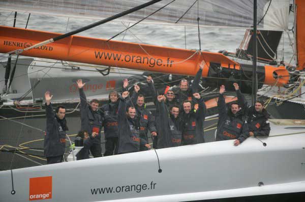 | The team on Orange II. Photo: Gilles Martin-Raget |