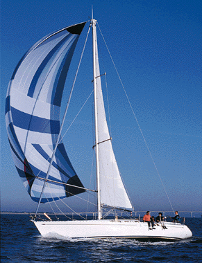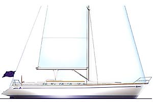 | This drawing represents the sleek, long lines of the Dufour Classic line. The Dufour 45 is a faster cruiser which goes to weather |