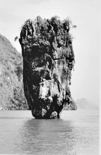 Cloud Nine has been in Phuket twice on previous trips and I consider it to be one of the outstanding cruising areas of the world. To take advantage of this, we spent several days with guest crews winding our way among the nearly vertical rock sentinels that jut from the surface of the waters of Phangnga Bay like clusters of Disney World castles. Many are riddled with hollows and caves which we explored by dinghy. In the photos, you may recognize the rocky pinnacle on which the evil Scaramanga placed his solar reflector in the James Bond film, "The Man with the Golden Gun."