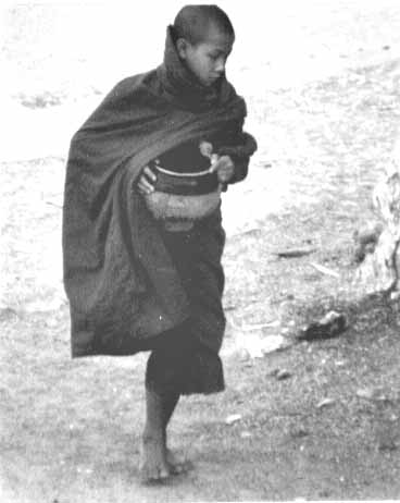 Burma is 87% Buddhist with temple stupas punctuating the city and country skylines. The stupa or pagoda (as it is often called) is usually a solid brick structure, normally built over a religious relic, in some cases a hair or bone fragment of the Buddha. The external surface of the structure is usually covered with gold, sometimes gold paint, but often heavy gold leaf. Each morning the monks go out to beg for food, as they are allowed to eat only what is given to them.