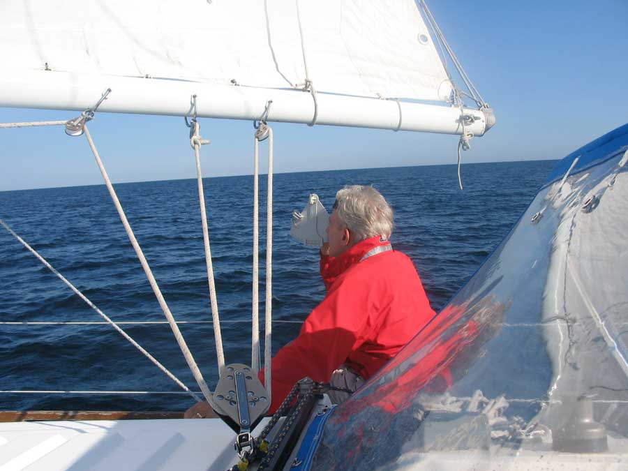 Just then, Jim calls for a tack, and as I scramble across the cockpit and