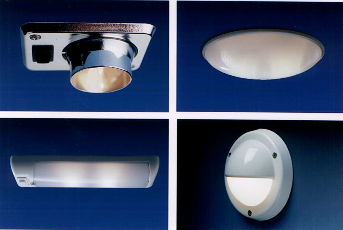 The Eyelight is an adjustable, recessed spotlight with switch. It is ideal for use as a directional spotlight, a reading light or for use in the navigation area. This 10-watt fixture is available in a white, chrome or gold finish. Suggested retail prices for these four fixtures are between $15 and $20.