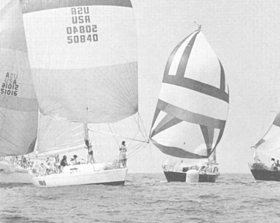 | These handicap boats are doing “dip-pole” jibes at a light-air reach