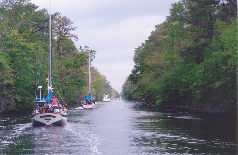 | Cruisers travel in company on the narrow and lovely Dismal