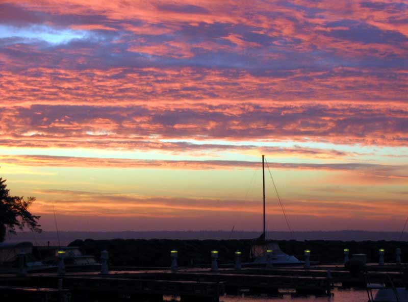 Sunrise over Pike’s Bay Marina, Bayfield, WI.