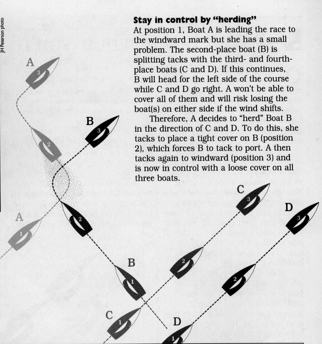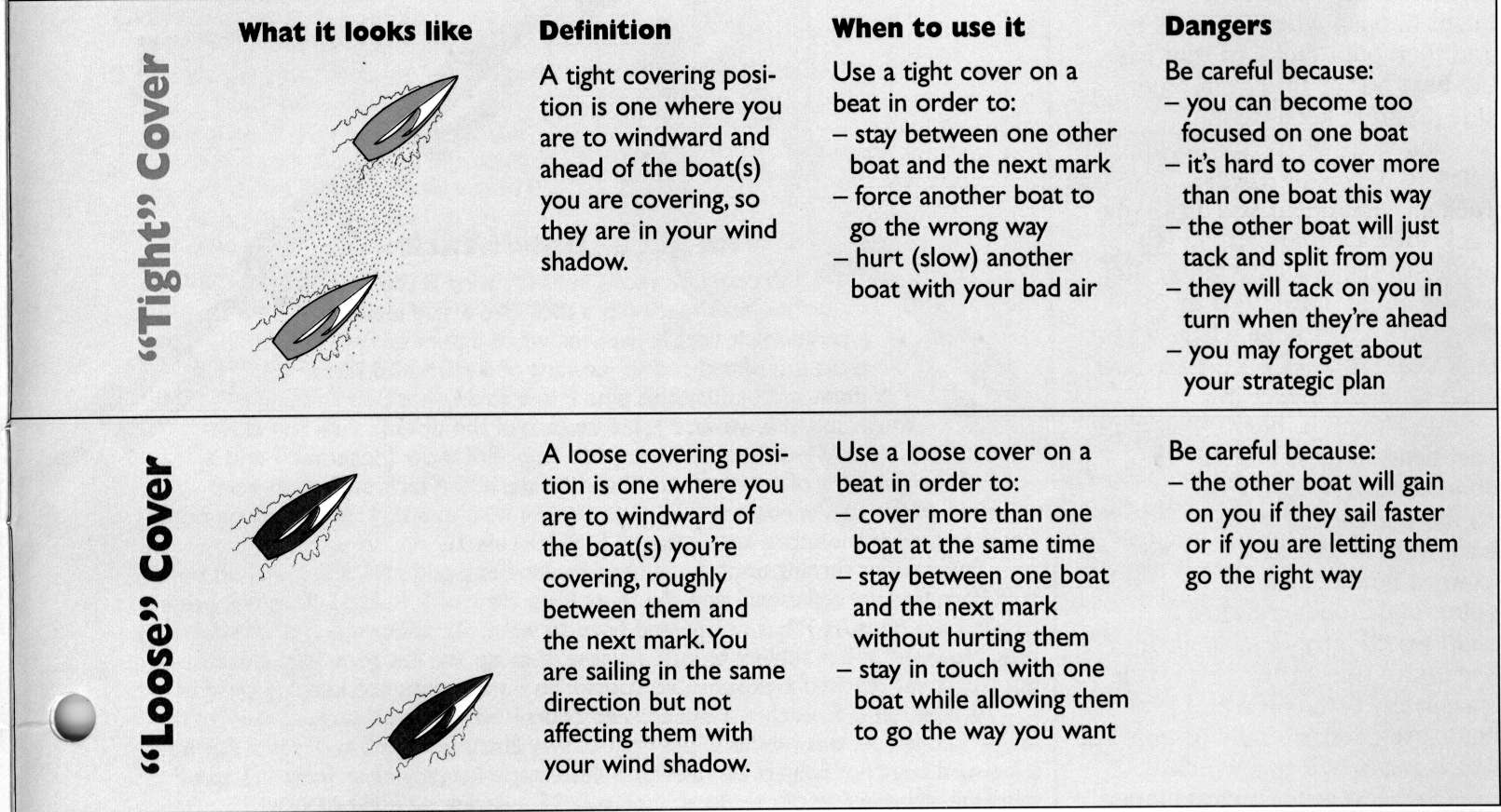 There are two basic covering techniques (see box at right). A “tight” cover is when you position yourself ahead and to windward of another boat. The idea is to keep a tight clamp on the other boat and also slow them with your bad air.