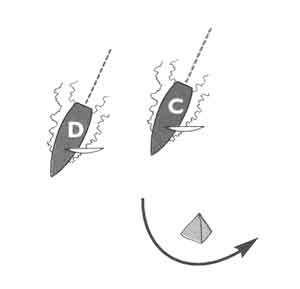 44) C is on starboard tack and D is on port tack. T S |