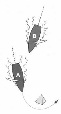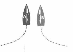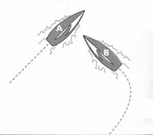 37) Boat B is overtaking boat A from