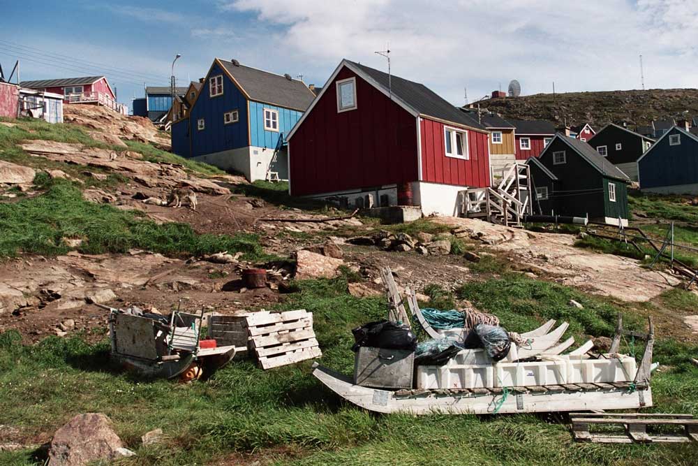 | Village of Upernavik—dog sleds in foreground. |