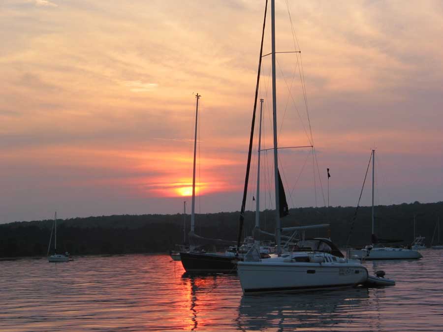Sunset at Raspberry Bay Anchorage, Apostle Islands, WI.
