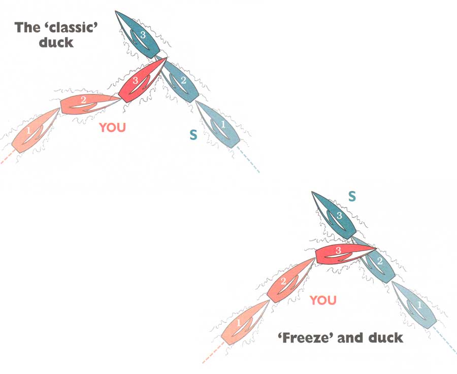 | The classic technique for ducking a starboard tacker (S) is to bear