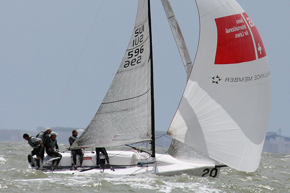 With racing in the main World Championship series scheduled to start in the morning, most teams spent the afternoon after racing today on boat preparation, final sail selection and planning for the week of racing ahead. Soling Olympian and America's Cup sailor Espen Stokkeland, tactician aboard Full Medal Jacket, said that the Norwegian team were looking forward to the coming week. "There are so many great teams here this week. The racing is going to be intense, with all of the top guys battling it out against each other. We expect the racing to be really close. It's going to be great."