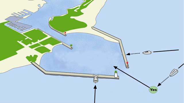 into the harbor at night. There are 19 Ludington like breakwater systems