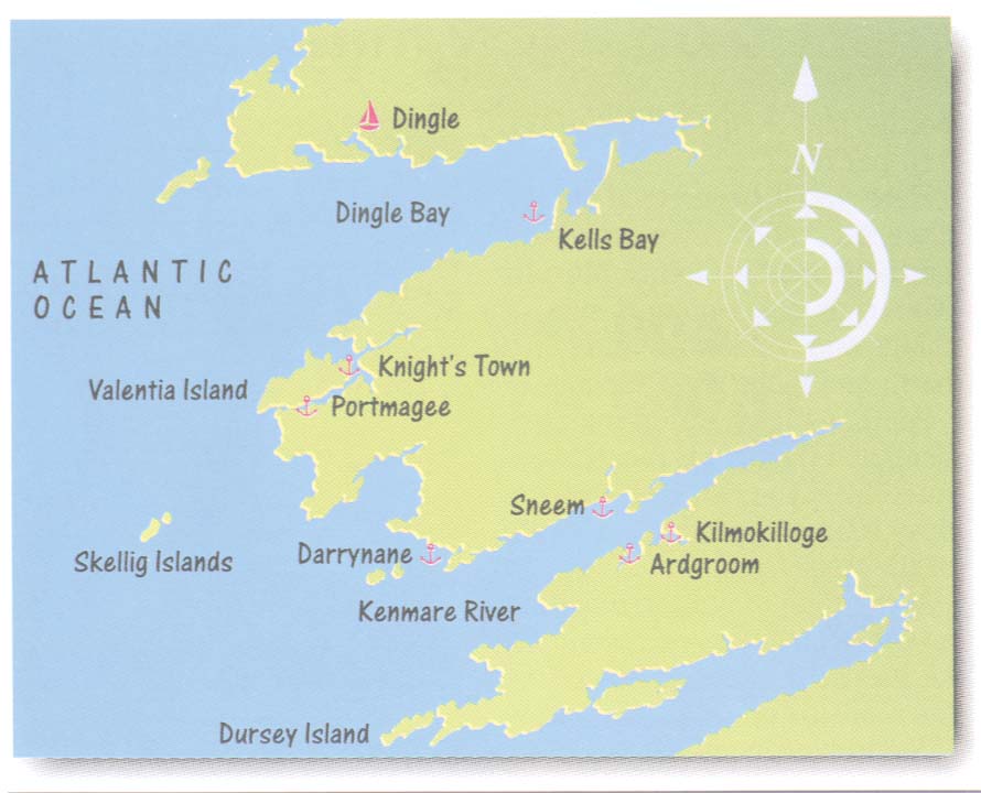 Dingle, our arrival port, is an engaging base for exploring the Dingle Peninsula. It is also loaded with services, good food, music and pubs. We had a special treat in that we met an Irish couple, Michael and Ann, who were on holiday. They were invaluable in their tips and commraderie. We would see them several more times. People are a great treat in Ireland. Lt Cdr Brian Farrell, the harbor master, and the berthing master Johnny Murphy were a daily delight. It was great to see the kids enthusiastically sailing every day in their small boats from the sailing club. There were several other cruising boats in the harbor but no other Americans. After resting up for 4 days we set sail for