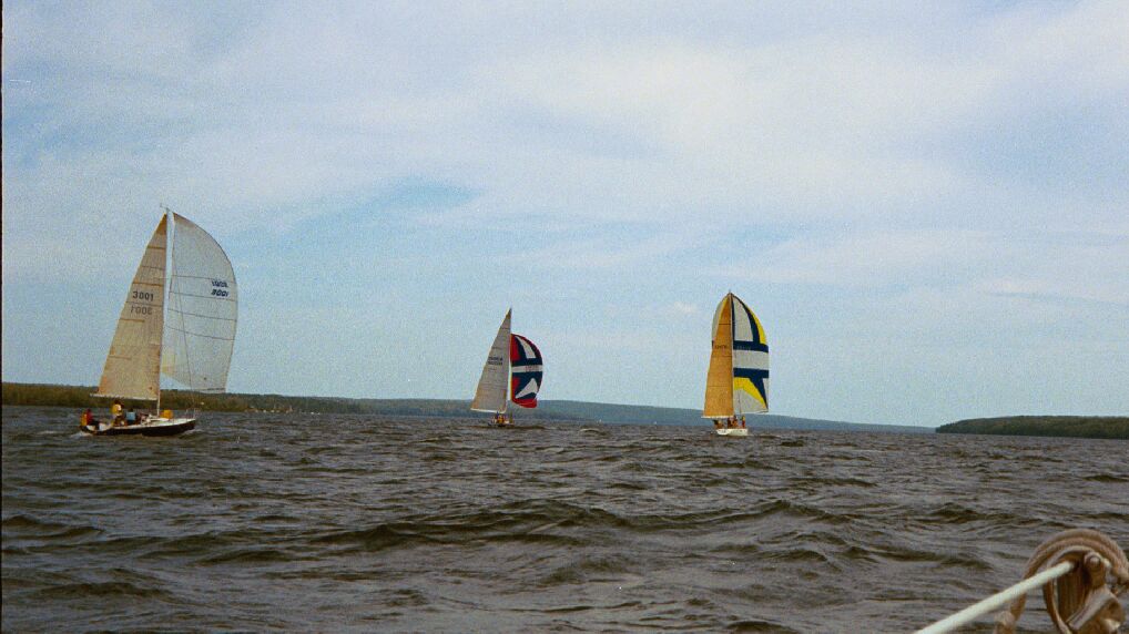 took some heavy convincing. "The Beginning" Bayfield Race Week didn't just start in 1979; its origins actually started four years earlier in the summer of 1975, when I suggested the idea to my friend and sailor buddy, Gordy Jones. Throughout the country in those years yacht clubs where putting on major events, Block Island Race Week, SORC in Florida, Annapolis and many other clubs and locations. Having spent four years working in the Bayfield, Wisconsin and experiencing Lake Superior ("the big lake") and the magic of the islands, the area just seemed a natural for a major regatta. Apostle Islands Yacht Club, formed in the 60's and located in Bayfield, provided a great racing program in the 70's and in conjunction with the Off Shore Race Series and Trans Superior Race, sailboat racing was hot. What was lacking in the racing program and the area was the intensity of a week-long major sailing regatta and the social activities that would come with the event. So, in 1975 I started what I thought would be a simple campaign, suggesting to the Club's Race Committee the idea of a race week, a week of racing and fun, what could be better? Well I was about to find out, my presentation went well I thought, but, I was blown out of the water with every excuse imaginable, from no one would spend a whole week racing, to, Bayfield is to far from anywhere to get sailors to come to the venue, to, not enough boats and many other lame excuses. Over the next four years, one race committee chairman after another rejected the idea, highly respected racers some of who would later admit that they should have jumped on the idea. Finally, "My break", came when my close friend Gordy Jones became Race Chairman for the 1979 season. "The Break" In November of 1978 at the annual yacht club meeting and awards banquet held at the Minnesota Club in St Paul, during the business the elections of officers and the appointment of committee chairs for the next season I thought I might just get what I wanted. I knew that Gordy Jones was next in line for Race Committee Chairman, so I didn't make my usual pitch of previous years for race week, once Gordy was official and the meeting was over I approached him in a hallway outside of the meeting room. I said, "Are you going to do Race Week"? He shot back, "NO! I'm not doing it!". I remember the moment as if it were yesterday, the instant shocked me. One of my best friends, a big supporter of the program, and it was hard for me to believe what he had just said. But in the next moment he said "You're in charge of race week." I can remember smiling as we went off for our first drink of the evening. Gordy Jones and I set in motion "Bayfield Race Week" and I was the first Bayfield Race Week Chairman. "The Plan" Shortly thereafter the planning started for the event, first with a layout of the weeks racing activities; 5 consecutive days of racing with 2 races each day for four days and a distance race on the other day. Social activities as often as we could schedule them, a party during sign-in, a mid week party, and a large awards banquet the evening of the last day with plenty of trophies. Next was the promotion program, mailers to the membership of 11 yacht clubs in the Midwest in December 1978 and early January 1979, followed up with a huge promotion at the January, '79 Minneapolis Boat Show and again at the Boat, Sports and Travel Show in March, also in Minneapolis. The goal; get as many pre-registrations as possible to insure success. The winter of 1979 quickly blurred into summer and on that Sunday afternoon of first Race Week I sat at the Apostles Yacht Club with 16 pre-registrations, a keg of beer, a bunch of brats and a lot of promises. My wife Betty, son George and my Race Week crew were all in place and ready as I sat with Gordy wondering who and how many would actually show up. Around 3 PM they started showing up, sun glasses, tee shirts, shorts and deck shoes, I told them to have a beer; register and the brats would fire up at 4 PM. The racers and crew continued to pour in and by 7 PM we had 32 boats registered and well over 100 racers drinking beer, telling lies and chomping on bit to go racing. Early the next morning there was a knocking on my boat and another racer wanted to enter and by the time of the skipper's meeting three more boats had entered for a total of 35 boats for the week. "The Races" My plans for putting on the races called for Larry Ritten our race judge to set the line and I would put out the race buoys from my sailboat, return to the line and let Larry start the race. Well, it worked, but just barely. Using my sailboat as a chase boat for nine races, planning and hosting the parties and finally handling the awards banquet was all but a total burnout. Looking back the races were great fun and the parties were even better. The 2nd annual Race Week went about the same as the first year, fun racing and great parties. But it was obvious that the on the water program could be greatly improved. While celebrating after the awards program another close friend came over and put his arm shoulder and said "We need to do better for the racers". Bruce Nicolle went on to offer to contact Bert Foster to act as Race Week Race Judge and as they say "that's the rest of the story". "The Years" Ever year the sky blue water, bright summer sun, the excitement of the start and the party afterwards has brought the boats and crews back to Bayfield. Many great times, places, happenings and people have passed through the past 24 Race Weeks, where are they all now? The Dirt Brothers, quarter horse races, Bates Bar, all those Maggie's tee shirts and too many other memories to list. By my count 7,500 people (24 years x average 10 people per boat x average 30 boats per year) have participated. True many are the same people, but that only attests to the strength of the event Over the years the basic formula of the first year has remained the same. Some small changes in the social activiti