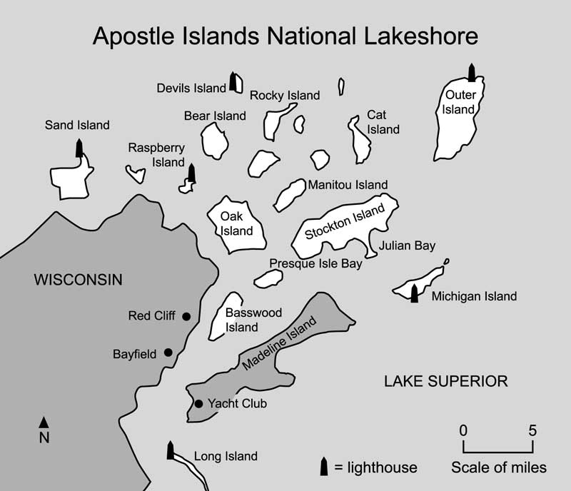 sandstone, and rhyolite rocks make up the majority of the Apostle Islands