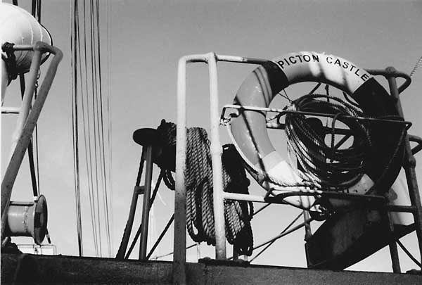 Certainly, the open water has a hypnotic attraction that's unlike anything dry land can offer. It becomes possible - even natural - to stand on deck for hours at a time, watching the bow break the deep blue-green water and send crest after foamy crest rippling endlessly away. At night, the sight of the ghostly silhouette of the masts against a star-swirled sky can fill even the most cynical person with awe and inspiration. Johnston, one of the ship's elder statesmen, believes that no sailor can be an atheist. "There must be an engineer for all this," he said, gazing at the heavens. "It can't be a mistake."