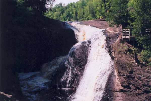For several minutes we simply absorbed the sight and sound. Waterfalls are an excellent example of nature’s ability to simultaneously calm and energize. Upstream, we picked our way along the narrow, twisting riverbed, taking care to avoid slipping on wet bedrock and boulders. There have been accidents, including two fatalities, when people attempted to ford the river or swim near waterfalls. Neither activity is advised. There are designated safe viewing areas at each of the five falls: Rainbow, Sandstone, Gorge, Potawatomi and Great Conglomerate.