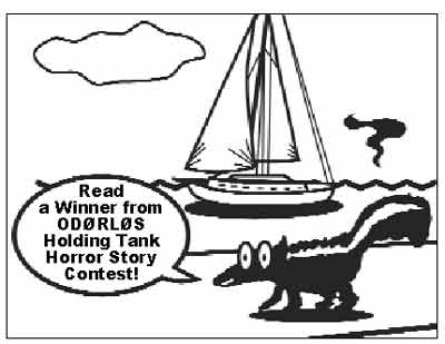 We were in such good spirits, nothing could ruin our evening. With every new boat the learning curve starts all over. Before we could address the head problem, we had to figure out how to get from the dinghy back on board, something we had not yet had to do with Eurisko, since we'd only had her a few weeks. Our dinghy is known to be a little tender, we all have stories to tell about ending up in the water because of her, so what happened next was not unusual for us. In trying to get from the thwart to the stem ladder Dave did a perfect imitation of the old Lipton Iced Tea plunge commercial. Even his reaction could not keep the four of us from laughing at him. We got him a towel so he didn't go below all wet and he eventually joined in the laughter, until we went down the companionway ladder. "What died in here?" "We told you the head was hard to pump." If the smell was any indication, this was not going to be nearly as pleasant an evening as we had thought.