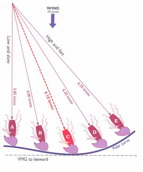 high and fast (E), or anywhere in between. You can go faster by sailing a