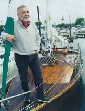 | Author at helm of his sailboat Persistence motoring