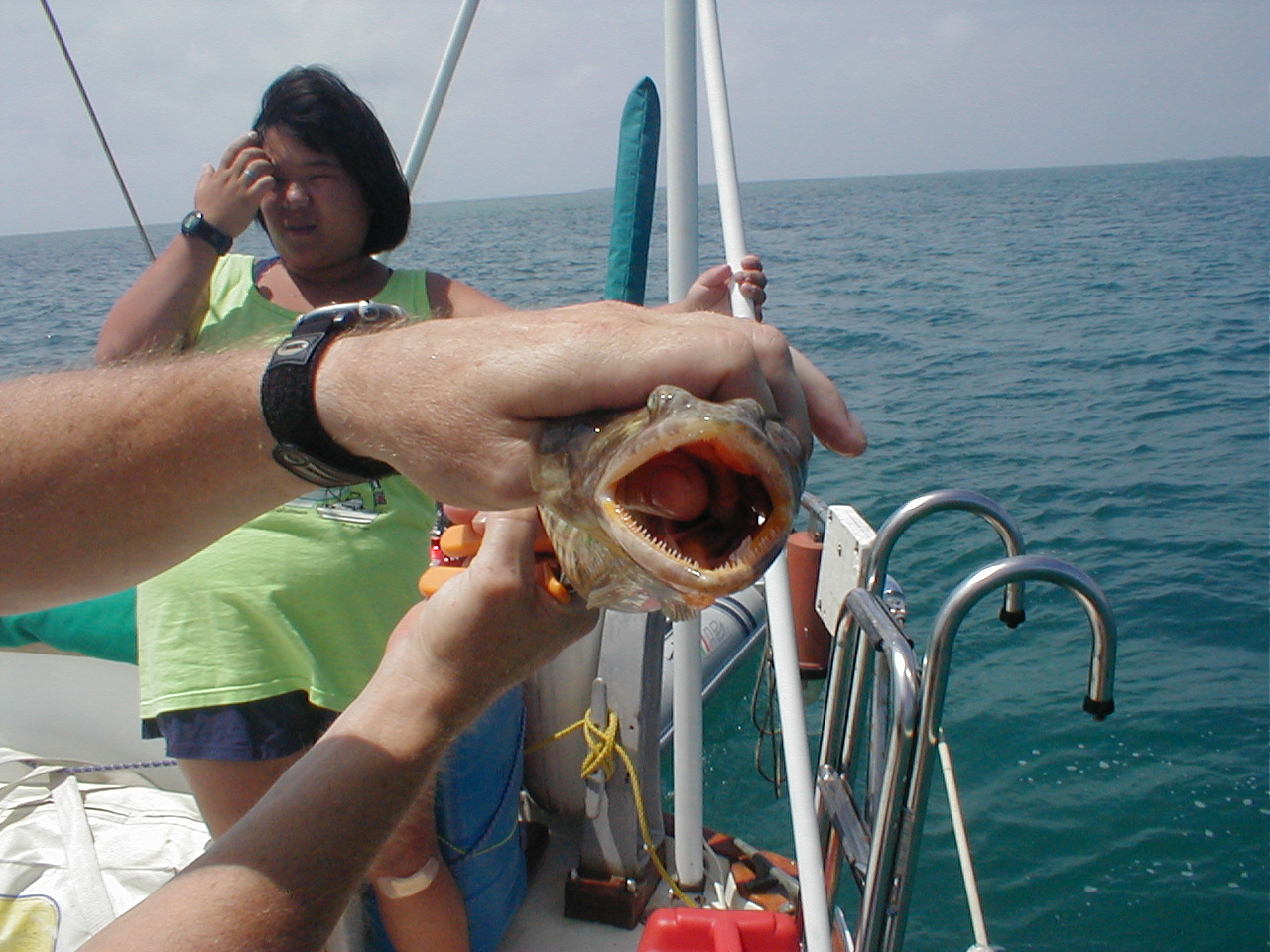 | What the heck did we catch? We haven’t yet identified this weird fish we caught in Belize. We released him so he can scare some other fisherman. |