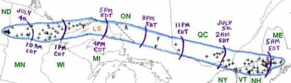 from NOAA site: The July 4, 1999 derecho was a huge superstorm that lasted farther and longer than many news reports have indicated. Beginning on the western border of Minnesota, the storm accelerated to become a derecho in the proximity of the BWCAW and northern Lake Superior. It did not end in the BWCAW but instead blasted eastward in a path of destruction for several days all the way to Maine. |