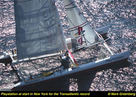 A tired but happy skipper Steve Fossett reported in to Mission Control's early morning shift with the news that he and the 125' maxi-catamaran PlayStation had just set another world record (pending ratification by the WSSRC - World Sailing Speed Record Council) on the Plymouth (UK) to La Rochelle (France) ocean passage. This is Steve and PlayStation's 7th world sailing record set in the last 12 months.