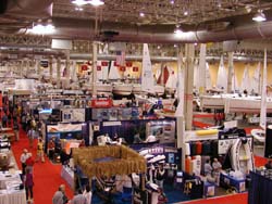 Arriving in Chicago about 4:30 P.M. we quickly checked in to the downtown Radisson and grabbed a cab to Navy Pier. Navy Pier lies along Chicago's downtown area and extends into Lake Michigan for a quarter mile or so. We found out later that it's actually within easy walking distance from our downtown hotel. While Navy Pier was larger than I'd expected, the show itself was actually a bit smaller than I had pictured it. Even so walking into the arena for the first time was a real thrill. I must say that seeing all those shiny new sailboats lined up all over the place was quite exciting. A benefit of going to the show on Thursday evening was the smaller crowds. With fewer people around there were no waiting lines to go through the boats. I noticed that for the balance of the weekend the arena filled up quickly and lines formed at almost every boat. We decided that we would tour the boats that evening and visit the vendors the next two days.