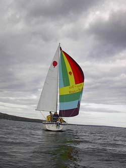 with its gloriously colorful spinnaker.