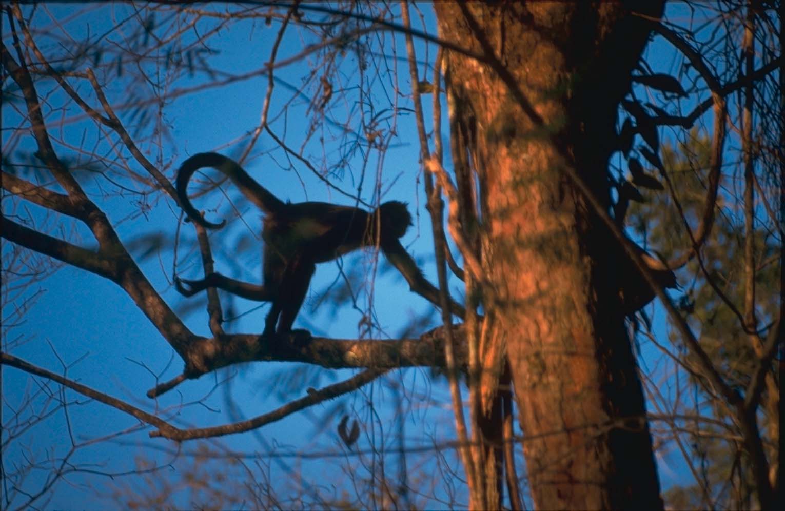 | A spider monkey climbs a tree in the rainforest near Tikal in Guatemala |