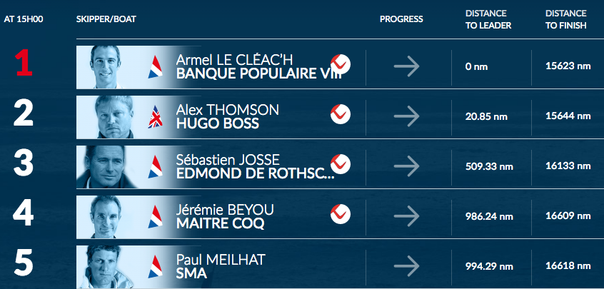 Meanwhile Jean-Pierre Dick became the seventh skipper to cross into the Indian Ocean after passing the Cape of Good Hope at 0915 UTC, completing the passage from Les Sables d'Olonne in 22 days, 21 hours and 13 minutes. Amazingly, despite being almost five days short of Alex Thomson's record-breaking run of 17 days, 22 hours and 58 minutes, Dick's time is still two hours less than that set by Armel Le Cléac'h in the 2012 Vendée Globe. Thomas Ruyant in eighth and Jean Le Cam in ninth are due to pass the milestone later today.