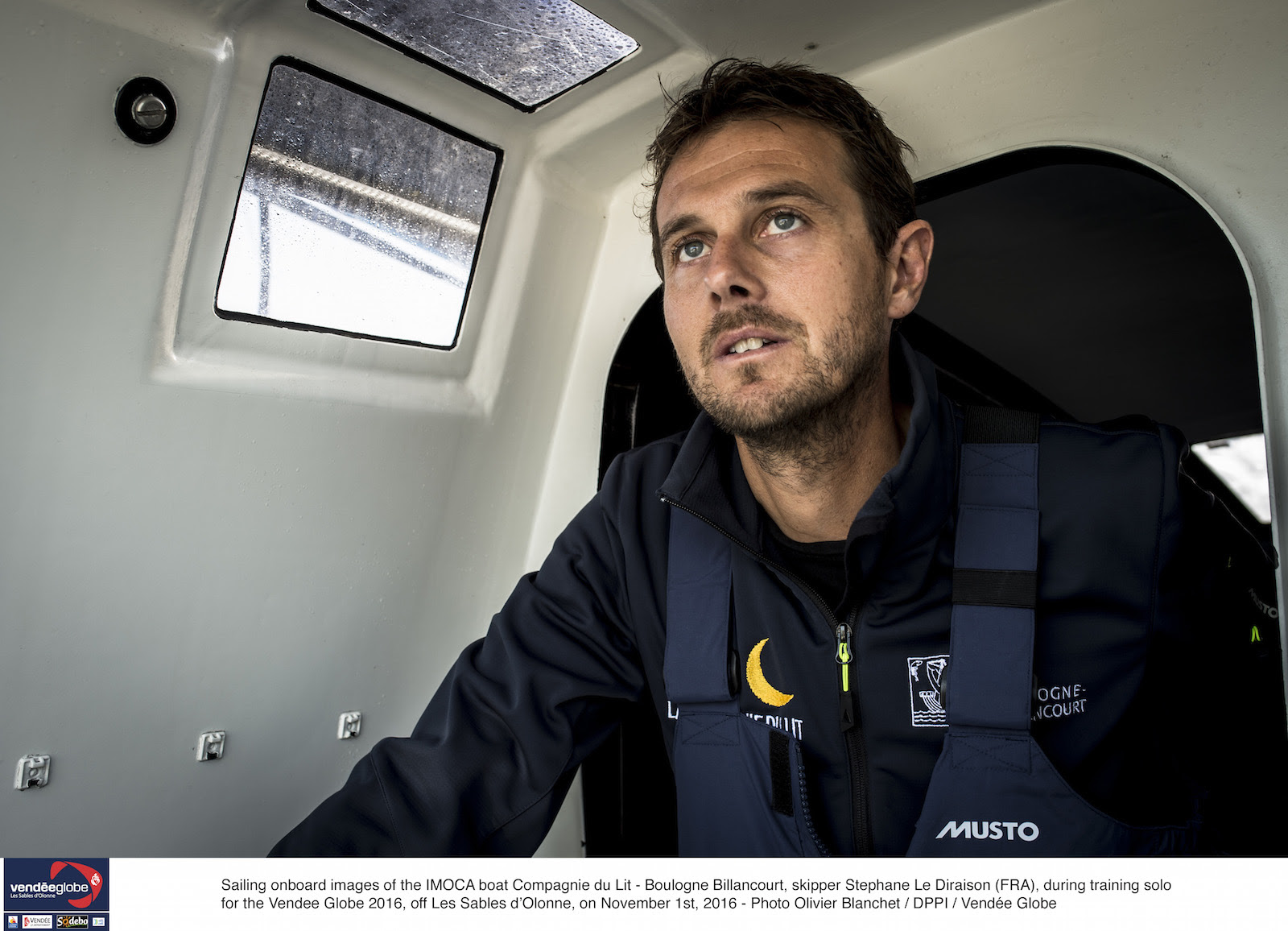 French skipper Stephane Le Diraison, who was lying in 10th place in the Vendée Globe solo round with world race, is making a course for Melbourne, Australia 950 nautical miles away, after his IMOCA 60 Compagnie du Lit / Ville de Boulogne-Billancourt was dismasted yesterday evening.