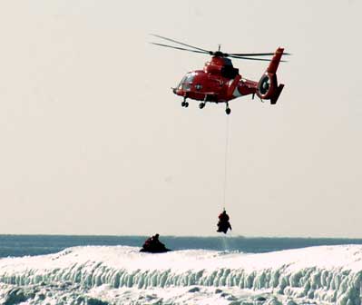 running down a slope of ice and over the edge,” said Coast Guard rescue