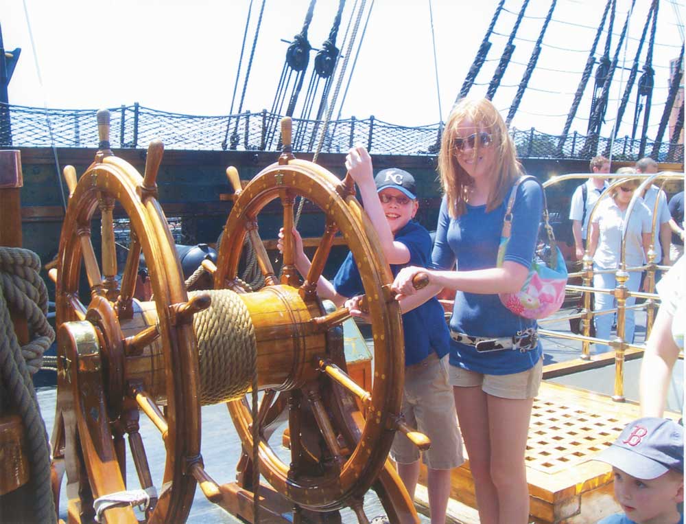 Ellen, on the tall ship U.S.S. Constitution on a recent family vacation in