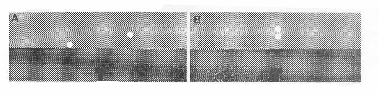 | If you were looking at this boat at night you would see the lights as you do in A, if the boat was perpendicular to you, or B, if the boat was coming straight for you or in your direction right infront of you. |