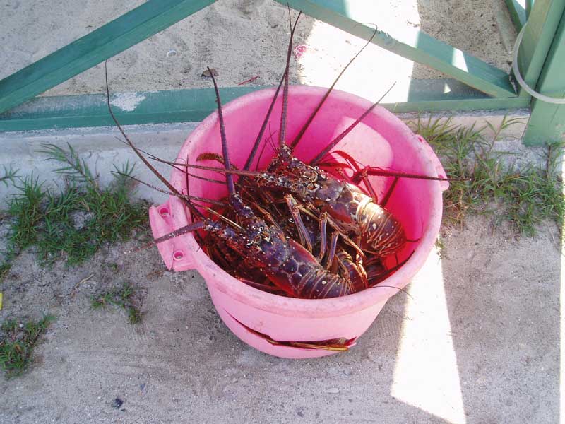 A fresh bucket of lobsters ready to make a fine dinner in the British Virgin Islands.